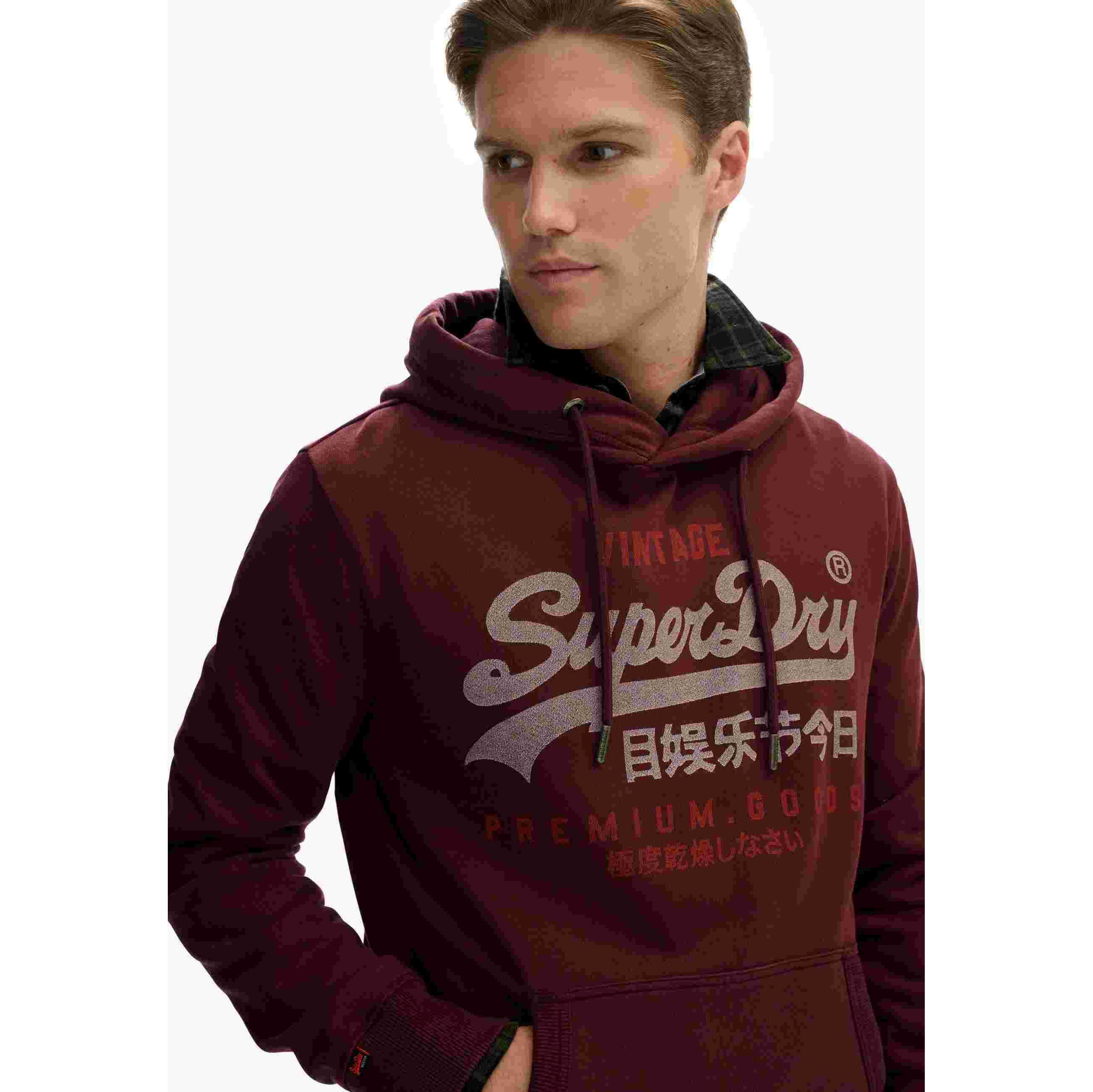 Superdry ανδρικό φούτερ. Ένα πραγματικό βασικό κομμάτι της Superdry, αυτό το φούτερ με κουκούλα προσφέρει καθημερινή άνεση με vintage στυλ. Κατασκευασμένο από 100% βαμβάκι σε γκρι μαρμάρινο χρώμα, διαθέτει κουκούλα με κορδόνι, ριμπ τελείωμα και μια ευρύχωρη μπροστινή τσέπη. Φινιρισμένο με το χαρακτηριστικό τυπωμένο vintage λογότυπο στο στήθος και μια ετικέτα με το λογότυπο στη μανσέτα, είναι το ιδανικό για χαλαρά layering.